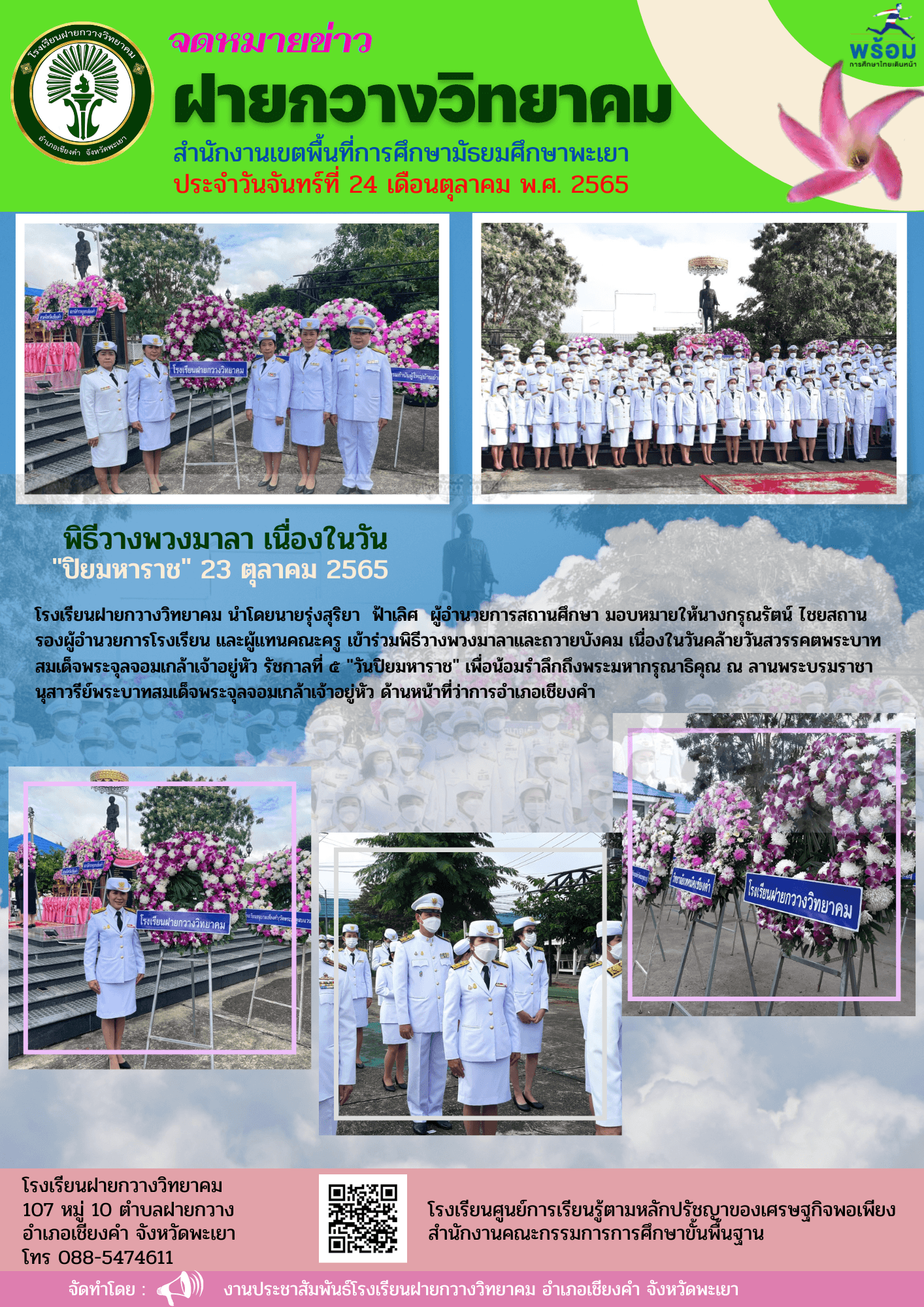 พิธีวางพวงมาลาเนื่องในวันปิยมหาราช 23 ตุลาคม 2565