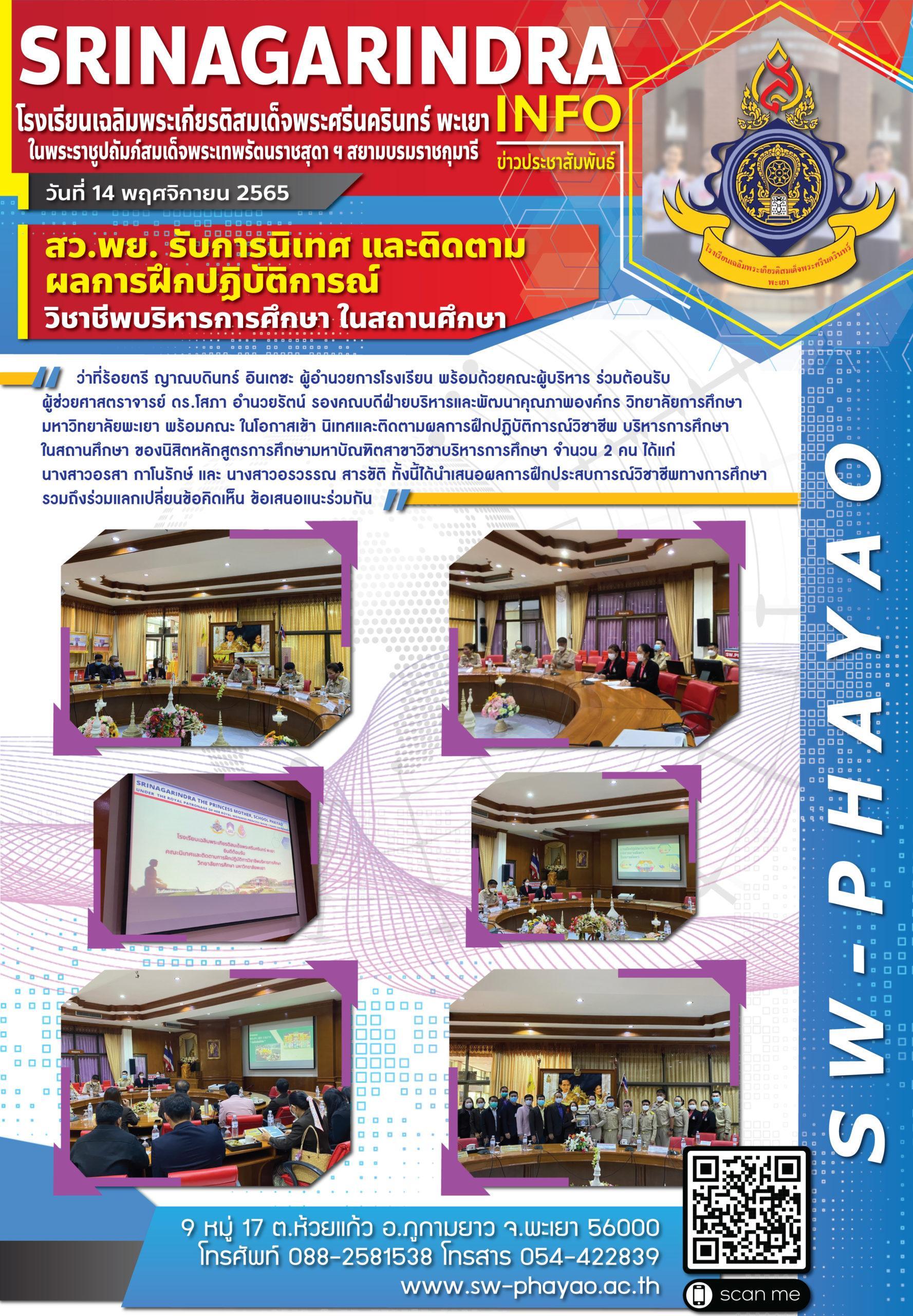 สว.พย. รับการนิเทศ และติดตามผลการฝึกปฏิบัติการณ์วิชาชีพบริหารการศึกษาในสถานศึกษา