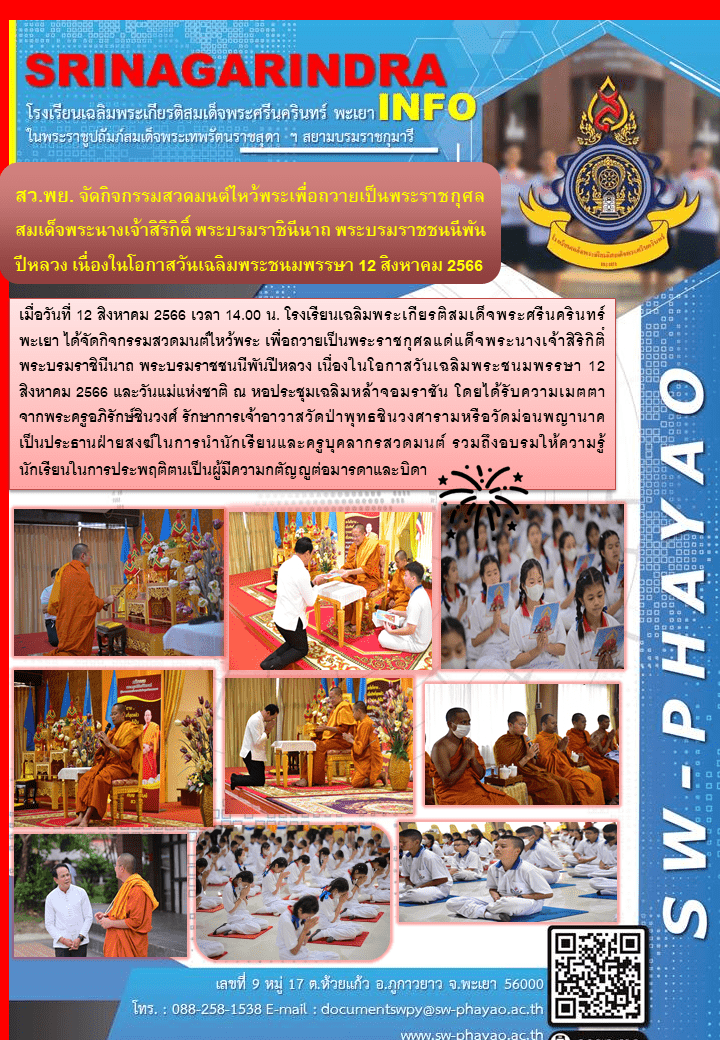 สว.พย. จัดกิจกรรมสวดมนต์ไหว้พระเพื่อถวายเป็นพระราชกุศล สมเด็จพระนางเจ้าสิริกิติ์ พระบรมราชินีนาถ พระบรมราชชนนีพันปีหลวง เนื่องในโอกาสวันเฉลิมพระชนมพรรษา 12 สิงหาคม 2566