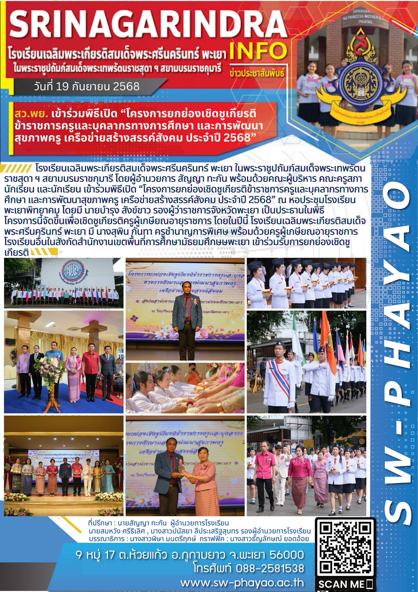 สว.พย. เข้าร่วมพิธีเปิด “โครงการยกย่องเชิดชูเกียรติข้าราชการครูและบุคลากรทางการศึกษา และการพัฒนาสุขภาพครู เครือข่ายสร้างสรรค์สังคม ประจำปี 2568” สว.พย. เข้าร่วมพิธีเปิด “โครงการยกย่องเชิดชูเกียรติข้าราชการครูและบุคลากรทางการศึกษา และการพัฒนาสุขภาพครู เครือข่ายสร้างสรรค์สังคม ประจำปี 2568”