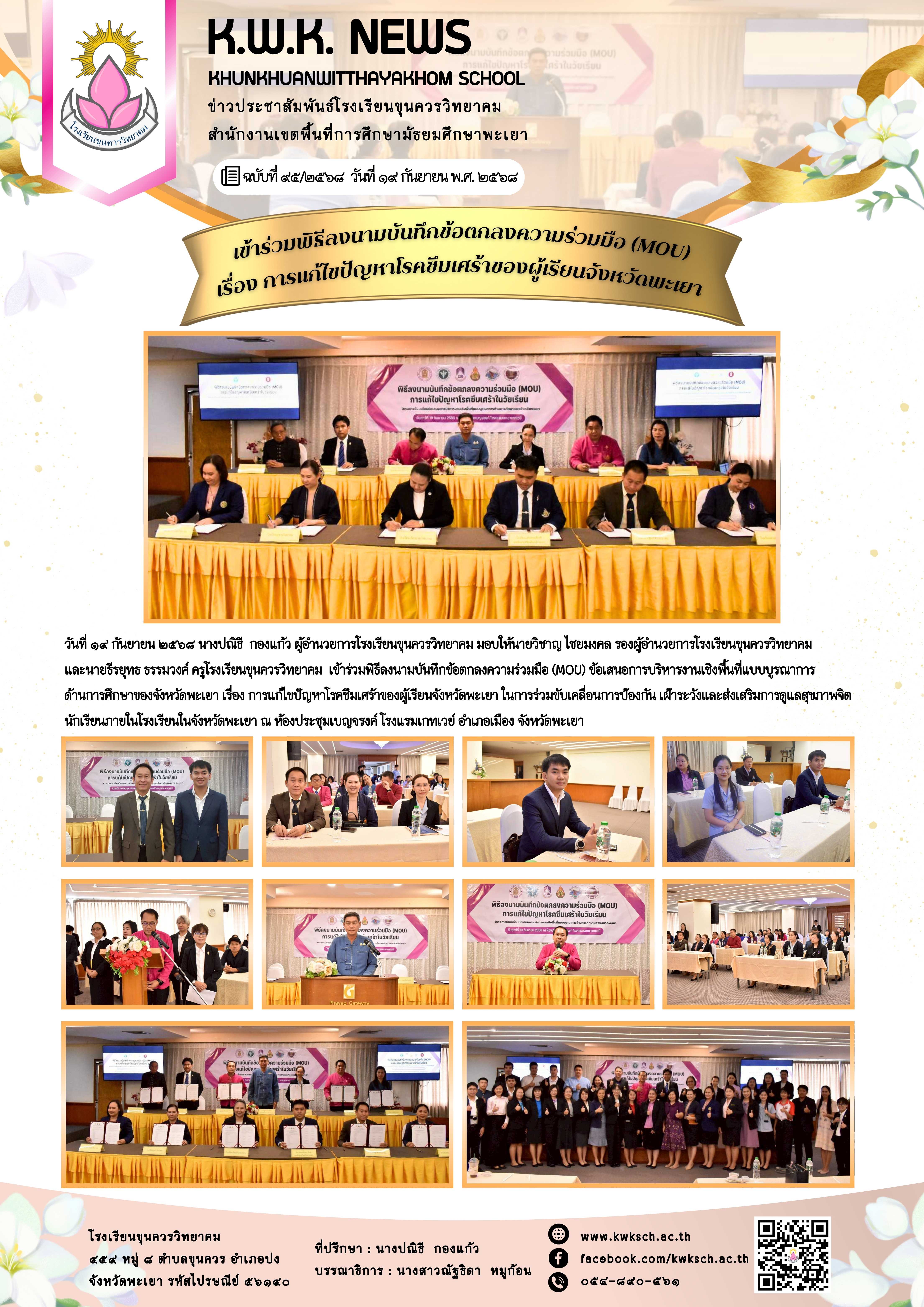 “เข้าร่วมพิธีลงนามบันทึกข้อตกลงความร่วมมือ (MOU) เรื่อง การแก้ไขปัญหาโรคซึมเศร้าของผู้เรียนจังหวัดพะเยา” “เข้าร่วมพิธีลงนามบันทึกข้อตกลงความร่วมมือ (MOU) เรื่อง การแก้ไขปัญหาโรคซึมเศร้าของผู้เรียนจังหวัดพะเยา”