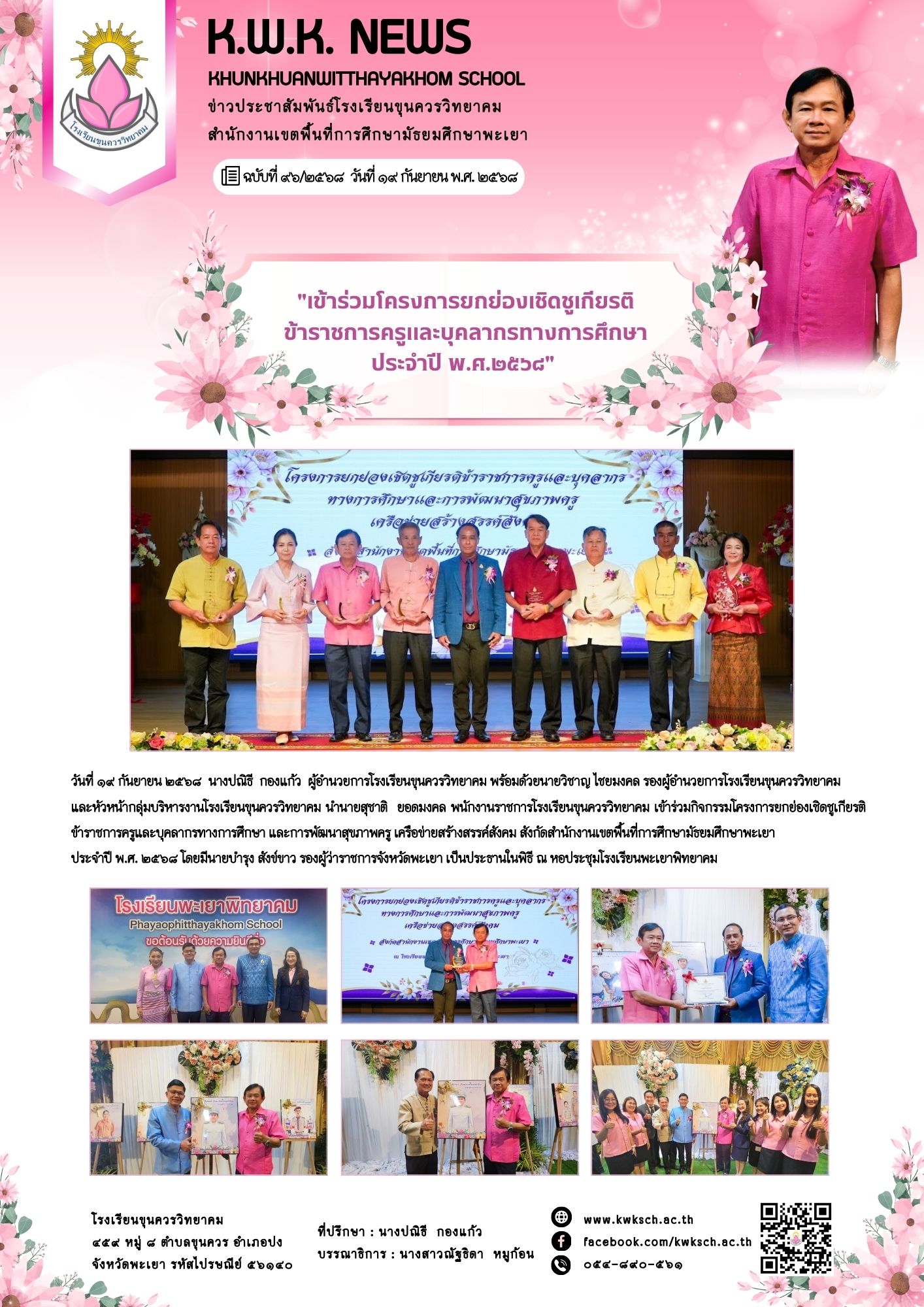 โครงการยกย่องเชิดชูเกียรติข้าราชการครุและบุคลากรทางการศึกษาและการพัฒนาสุขภาพครู เครือข่ายสร้างสรรค์สังคม สังกัดสำนักงานเขตพื้นที่การศึกษามัธยมศึกษาพะเยา ประจำปี พ.ศ.2568 โครงการยกย่องเชิดชูเกียรติข้าราชการครุและบุคลากรทางการศึกษาและการพัฒนาสุขภาพครู เครือข่ายสร้างสรรค์สังคม สังกัดสำนักงานเขตพื้นที่การศึกษามัธยมศึกษาพะเยา ประจำปี พ.ศ.2568